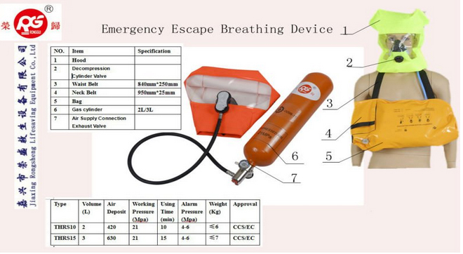 Approval: CCS/EC 1.Emergency Escape Breathing Deviceare only used for escape from a compartment that a hazardous atmoasphere to provide personel breathing protection